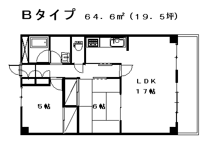 2LDK(LDK 17帖 和室6帖 洋間5帖)
